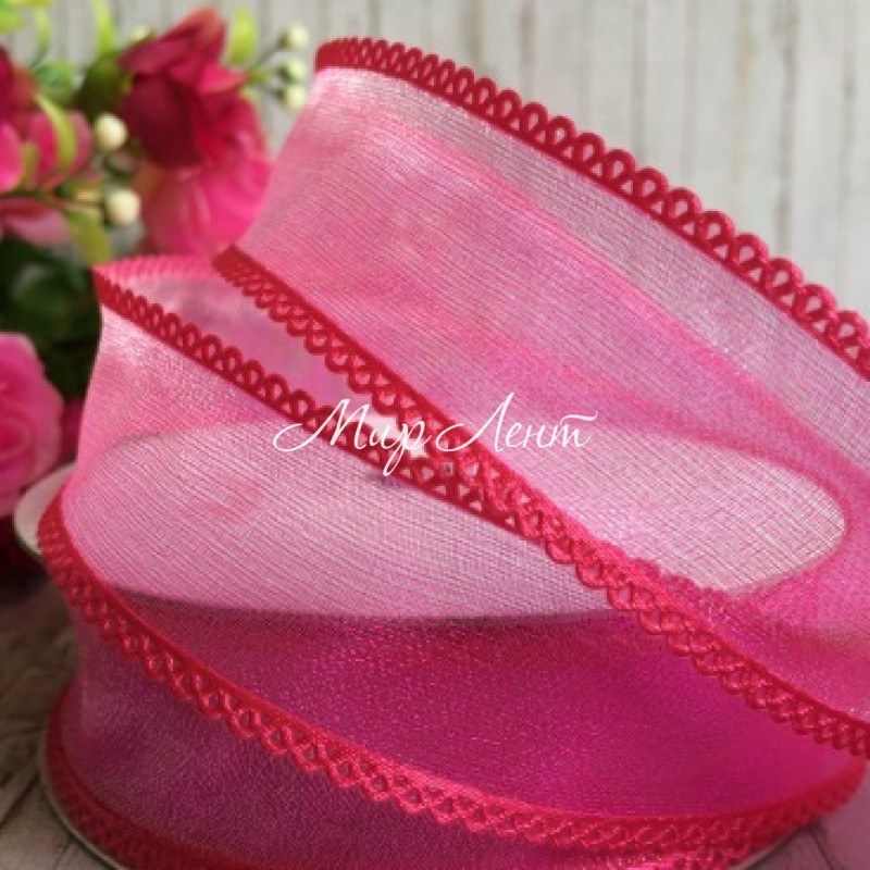 Органза с ажурным краем, 2,5 см, светло-малиновый