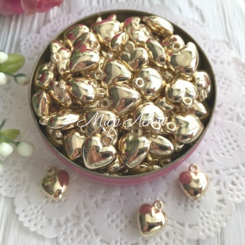 Подвеска сердечко (метал), 1,1 см, золото, 1 шт.