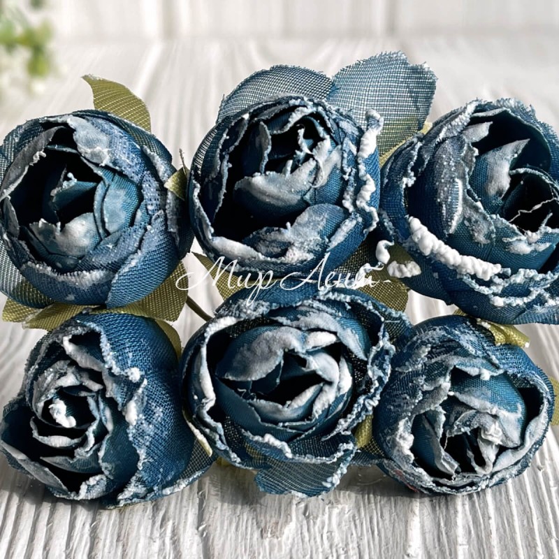 Пион тканевый с белым кантом, 3,5 см, темно-бирюзовый, пучек