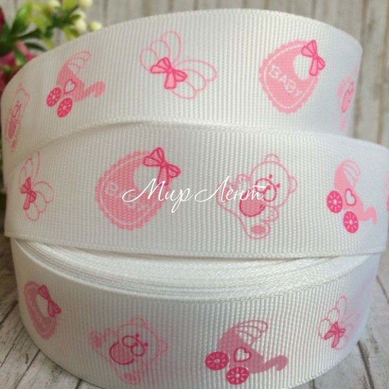 Репс 2,5 см, мишки Гамми, малиновый, метр