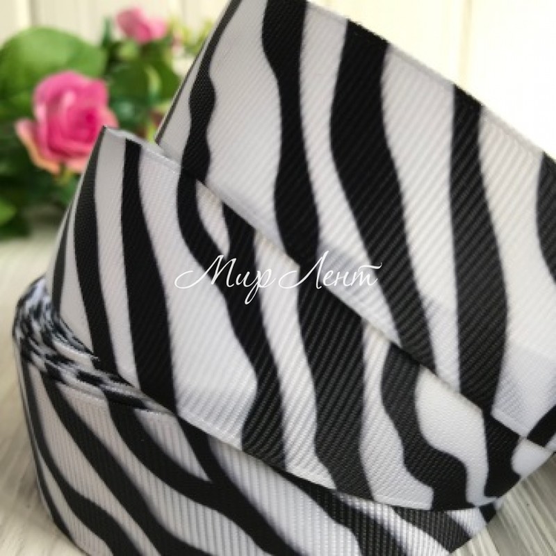 Репс 2,5 см, бело-черная зебра, метр