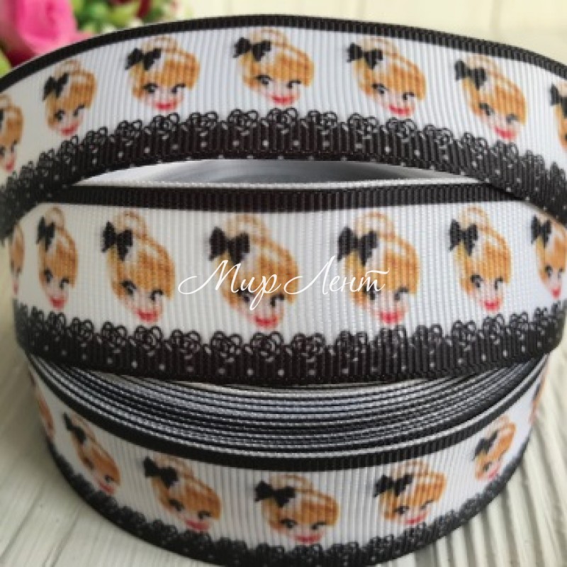 Репс 2,5 см, голова девочки на бело-черном