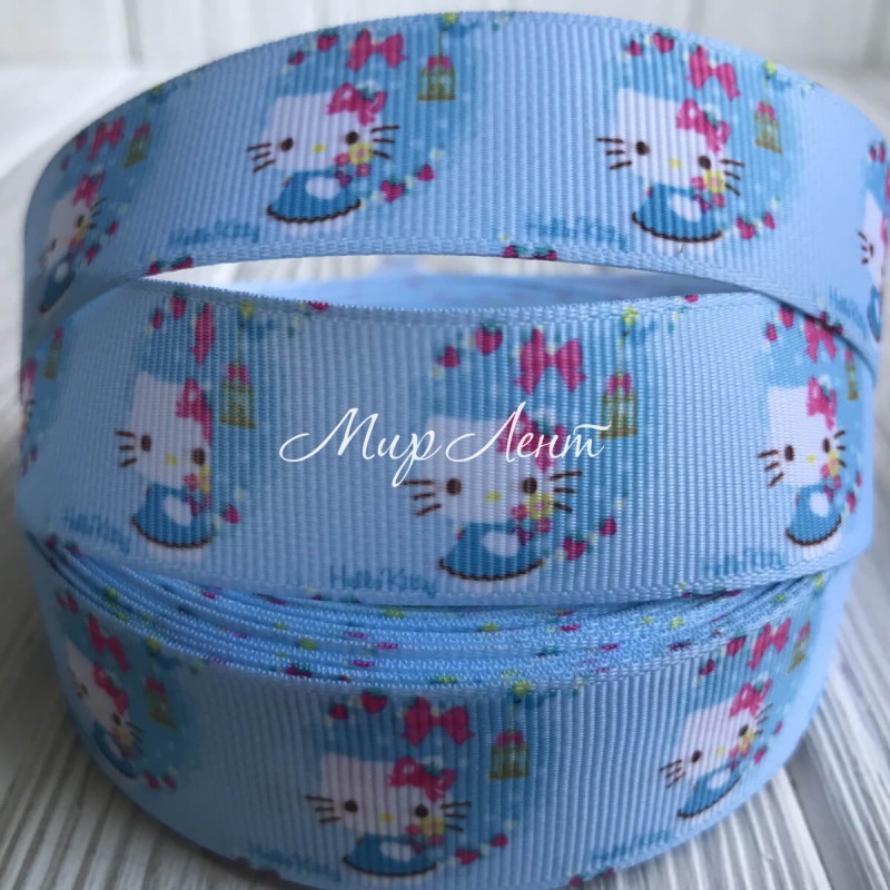 Репс 2,5 см, Hello Kitty, голубой, метр