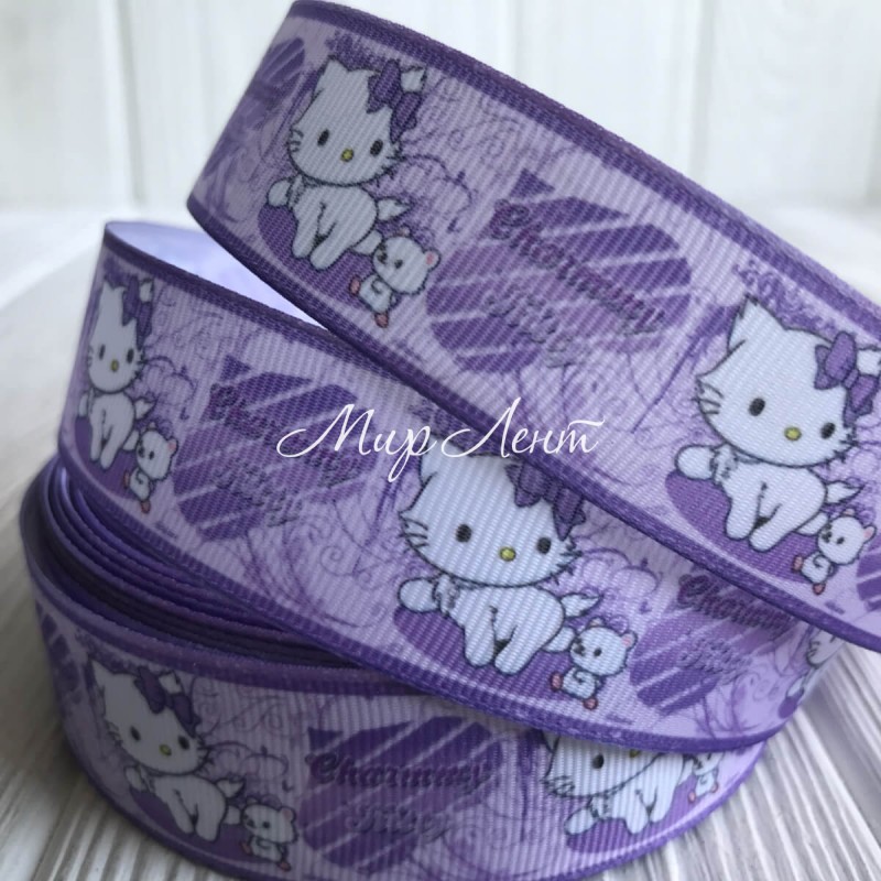 Репс 2,5 см, Hello Kitty, лиловый, метр