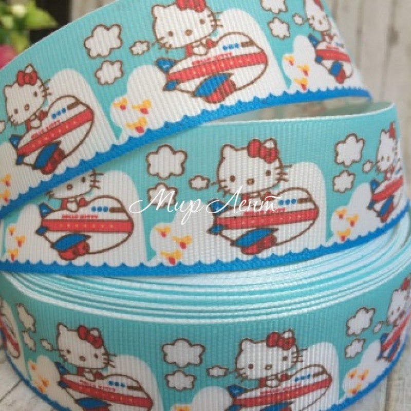 Репс 2,5 см, Китти в самолете, светло-бирюзовый
