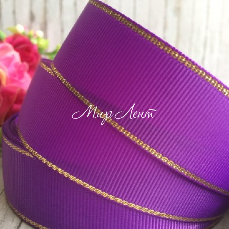Репс 2,5 см люрекс (золото), темно-фиолетовый, за 1 м