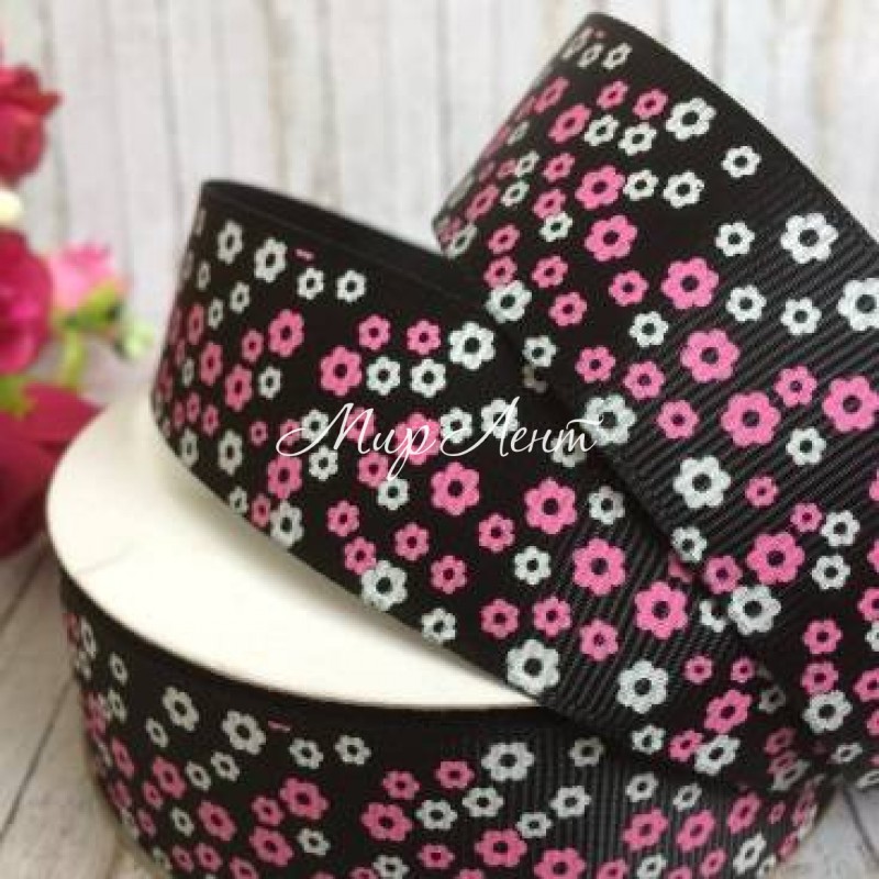 Репс 2,5 см, маленький цветочек, светло-розовый, метр