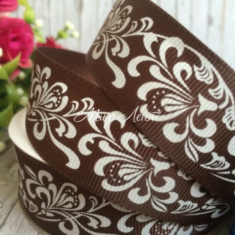 - Код товара: Репс 2,5 см, орнамент, шоколадный