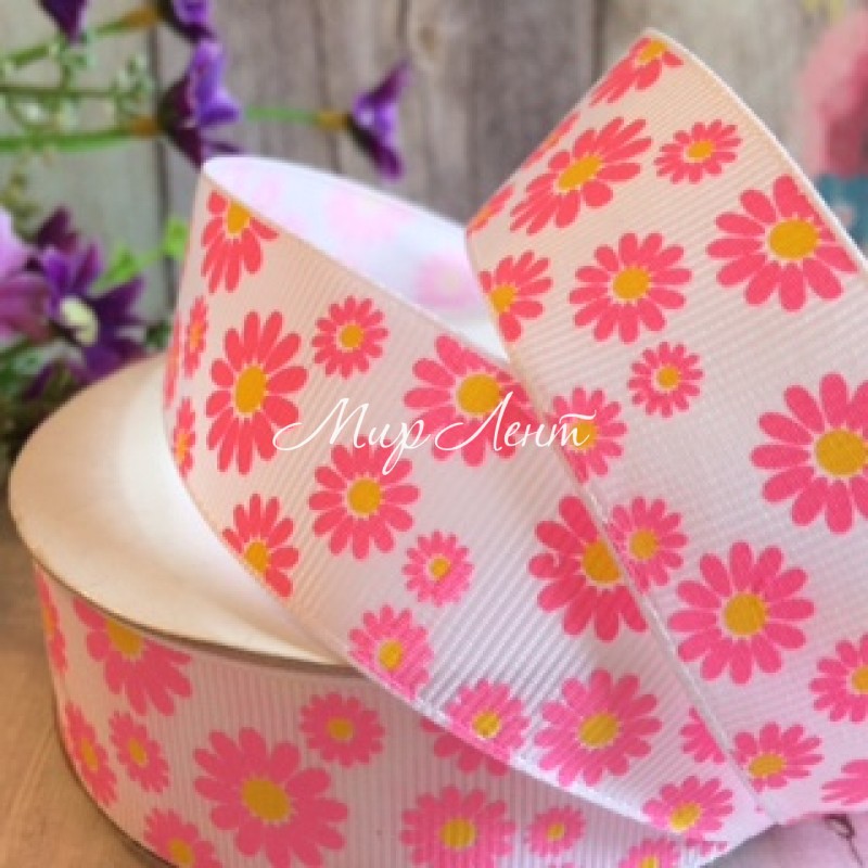 - Код товара: Репс 2,5 см, ромашка, белый с розовым
