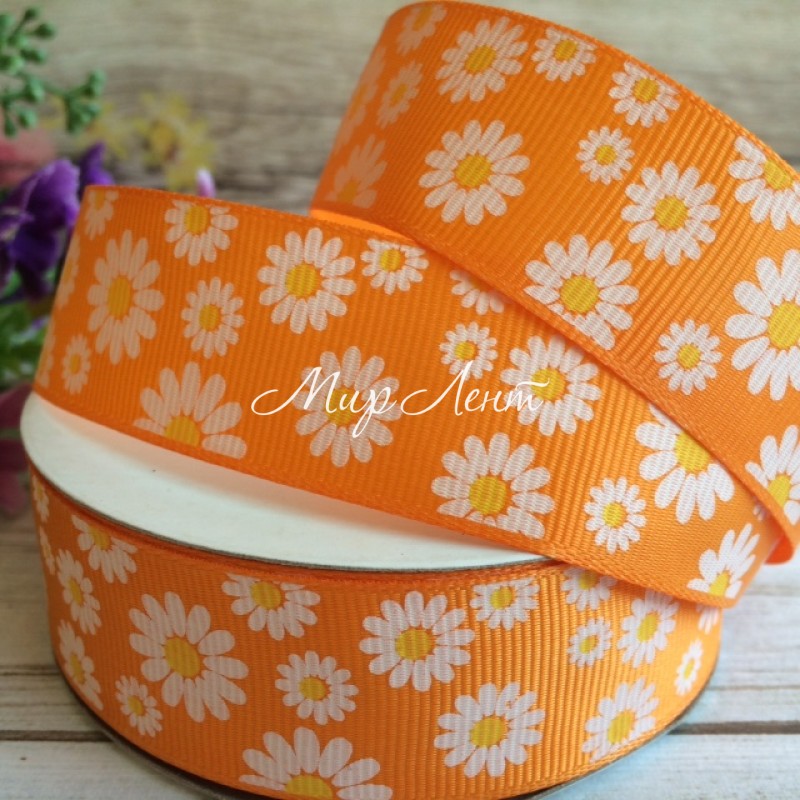 - Код товара: Репс 2,5 см, ромашка, оранжевый