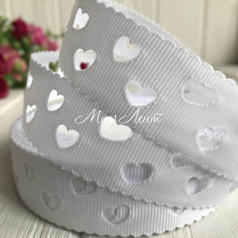 Репс 2,5 см, сердечка перфорированные, белый, метр