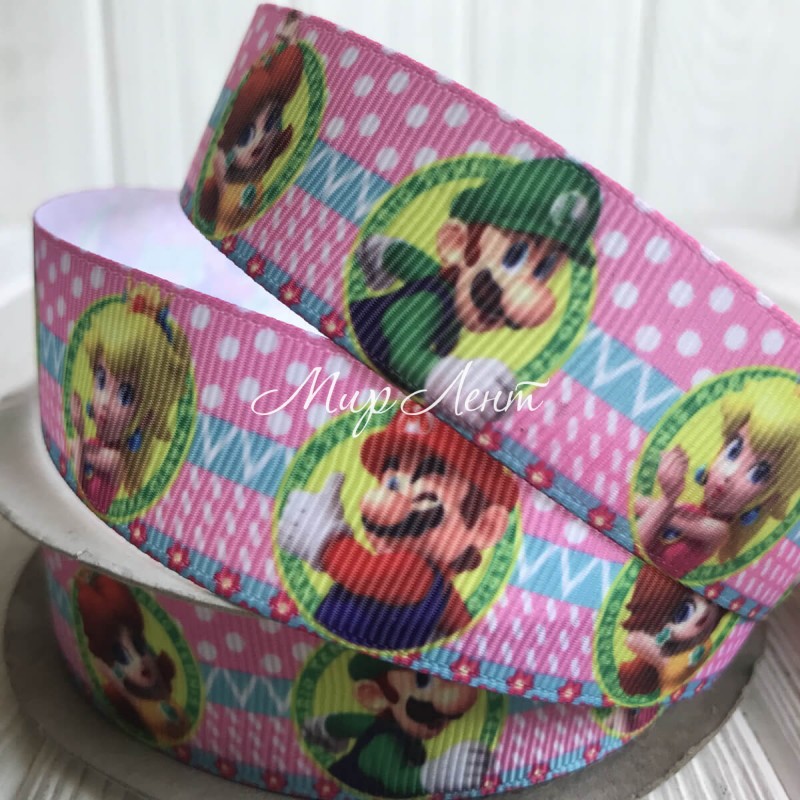 Репс 2,5 см, Super Mario, розовый, метр