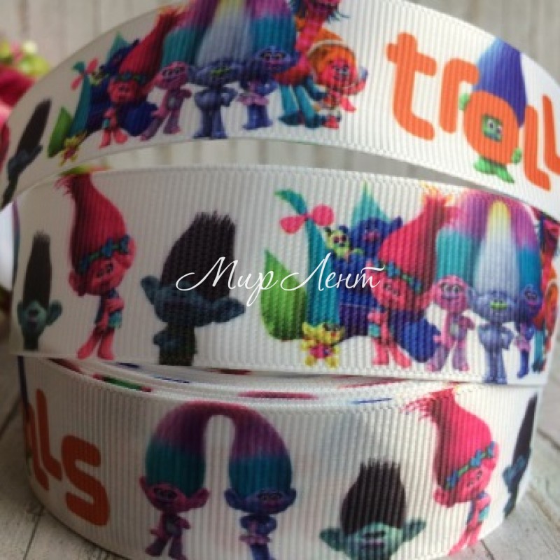Репс 2,5 см, Тролли, белый с салатовыми горохами, 1 м