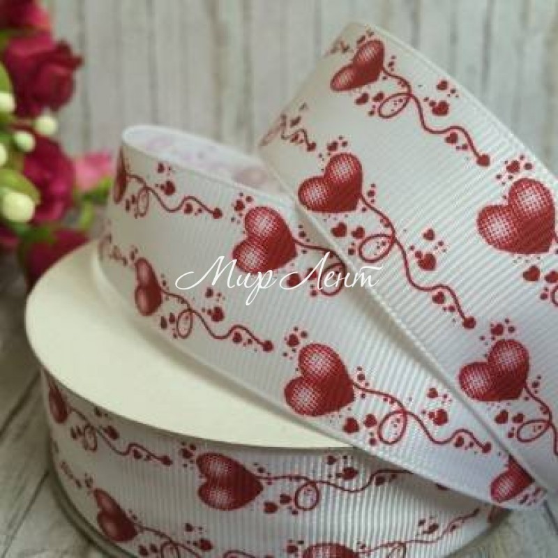 Репс 2,5 см, узор из сердечек, ярко-розовый