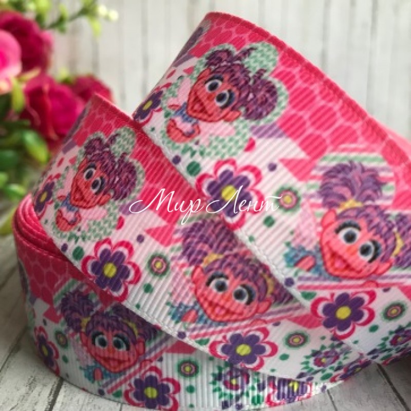 Репс 2,5 см VIP, девочка с хвостиками, бело-малиновый фон