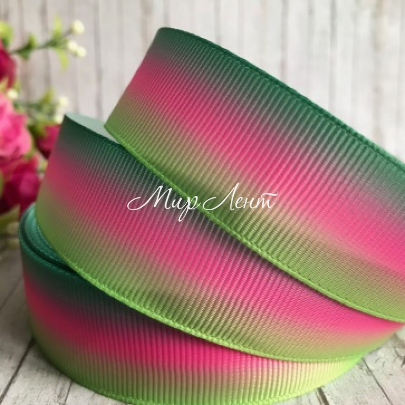 Репс Омбре, 2,5 см, зеленый-светло-малиновый-салатовый