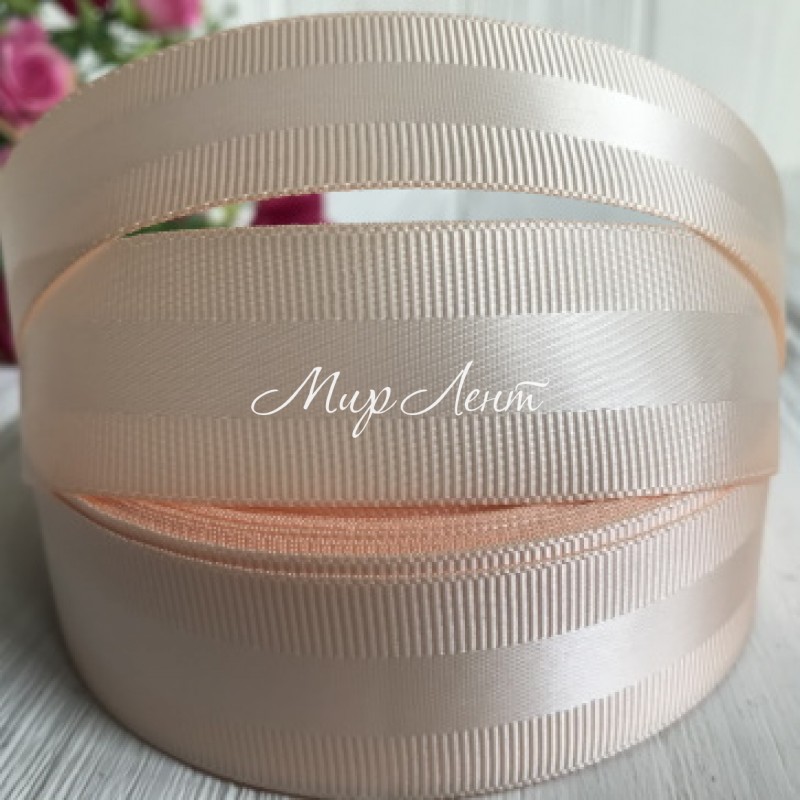 Репс с атласной полосой, 2,5 см, персиковый, метр