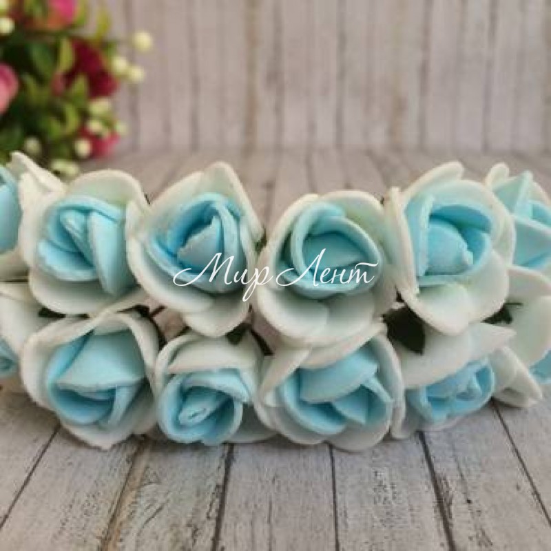 Роза 1,5-2 см, бело-светло-голубая, 12 цветочков в пучке