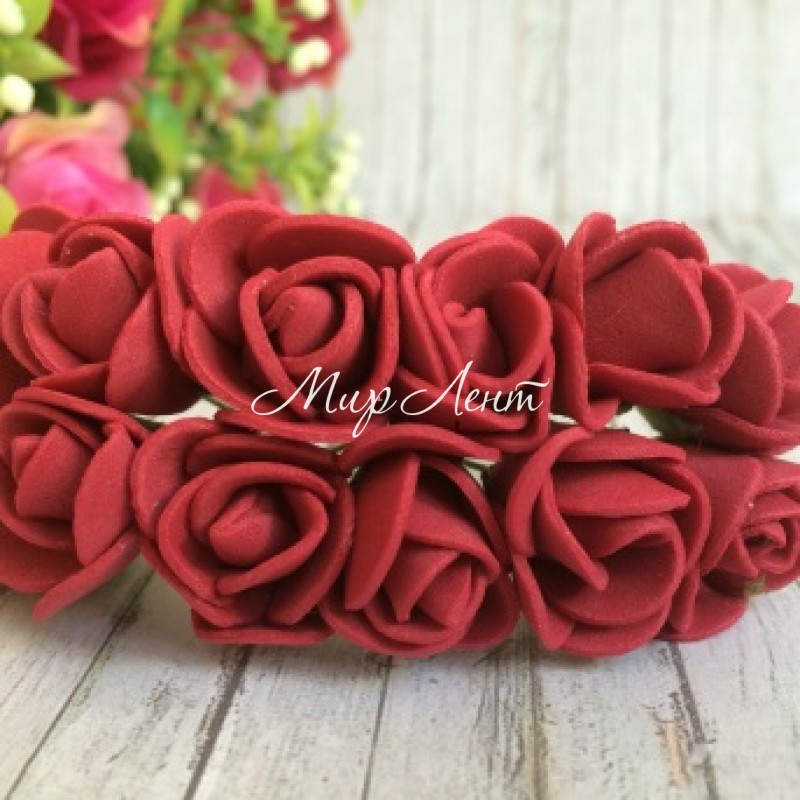 Роза 1,5-2 см, бургунди, 12 цветочков в пучке