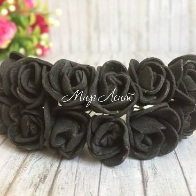 Роза 1,5-2 см, черная, 12 цветочков в пучке