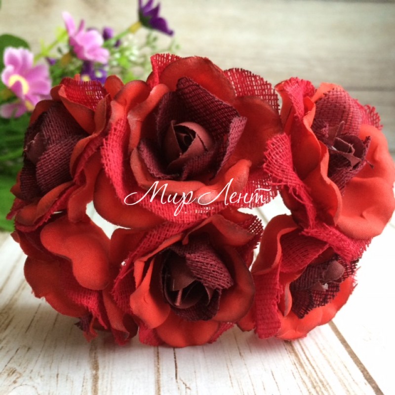- Код товара: Роза с тканью, 3,5 см, красная