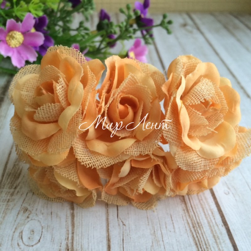 - Код товара: Роза с тканью, 3,5 см, темный персик