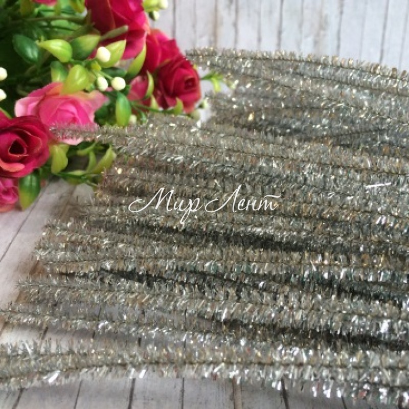 Синельная проволока с блестками, 30 см, серебро, цена за шт.