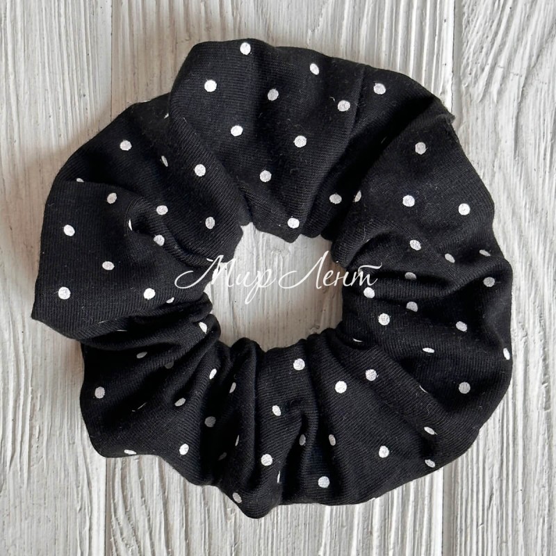 Скранч трикотаж горох, 12 см, черный в белый горох, шт.