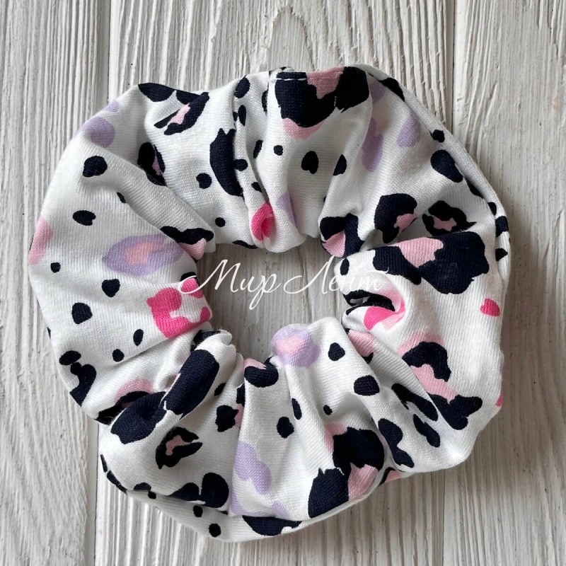 Скранч турецкий трикотаж, 12 см, белый с розово-черным леопардом, шт.
