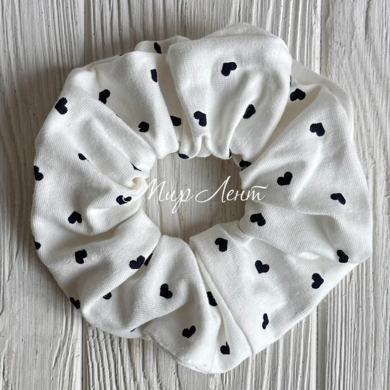 Скранч турецкий трикотаж, 12 см, белый с сапфировыми сердечками, шт.