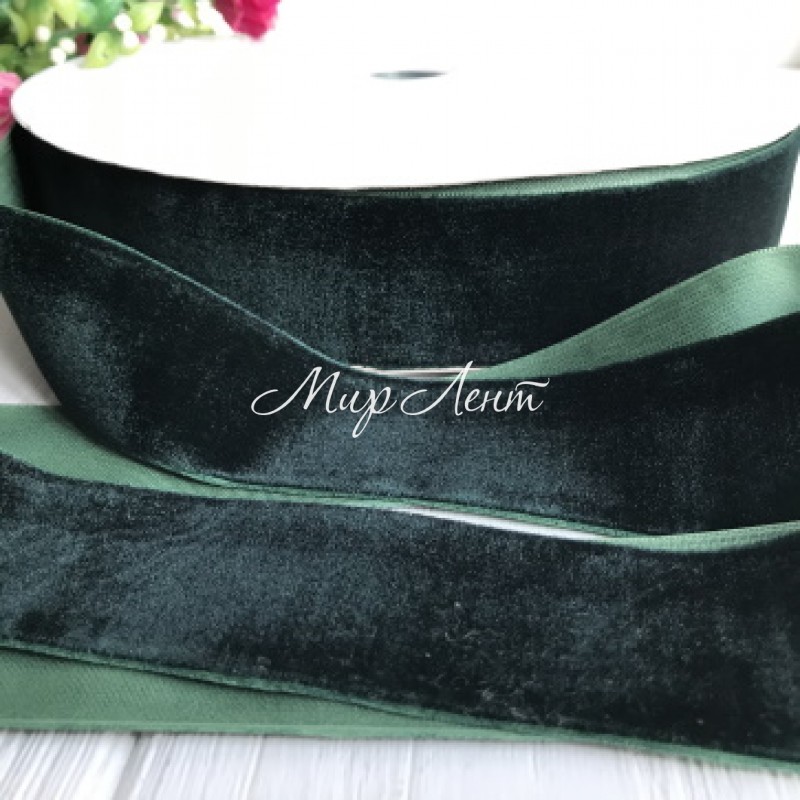 Лента велюр, 4 см, темно-зеленый, метр