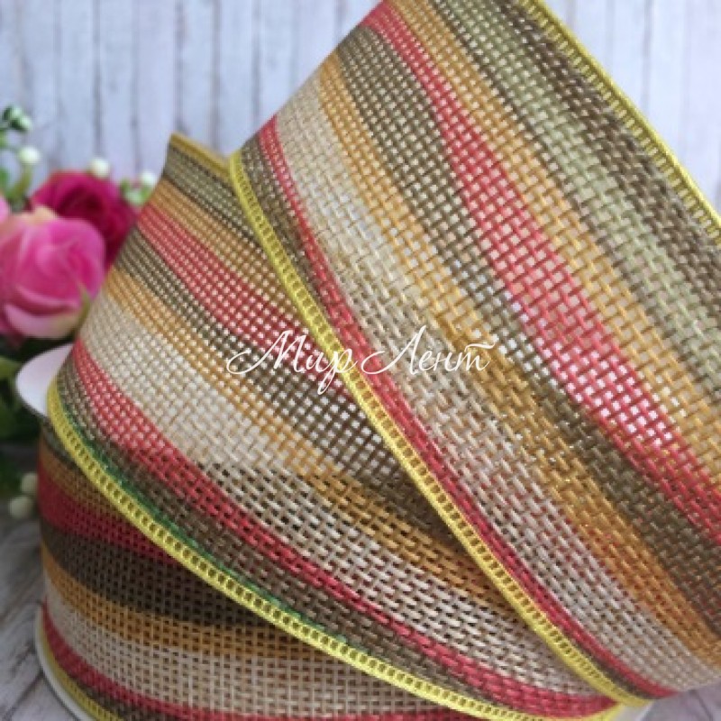 Лента из мешковины волна, 4 см, молочно-желто-оливковый