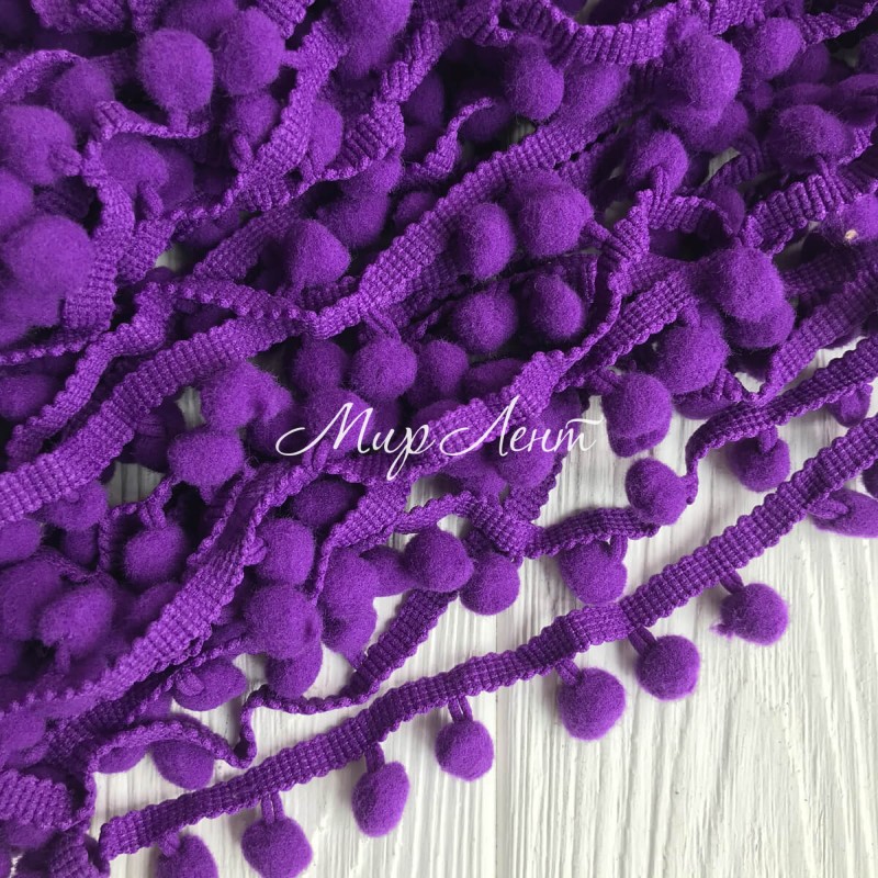 Тесьма помпончики, 1,3 см, черничный, метр
