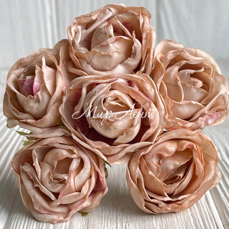 Винтажная роза, 3,5 см, бежевая, пучек из 6 цветочков
