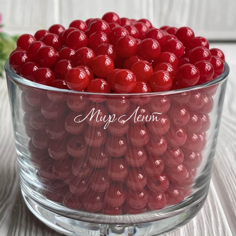Жемчуг 6 мм, красный, 1 шт. (пластик)