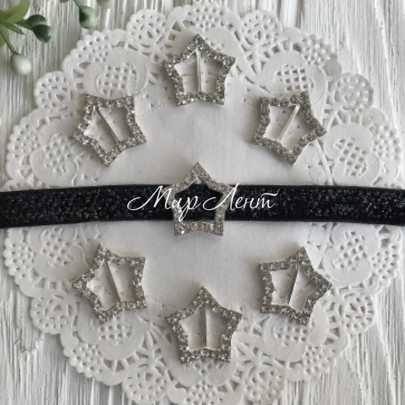 Серединка для бантика зі стразами (пряжка), 22 мм, зірочка, 1 шт.