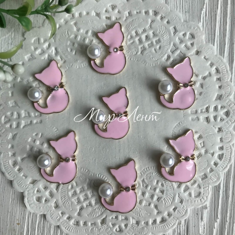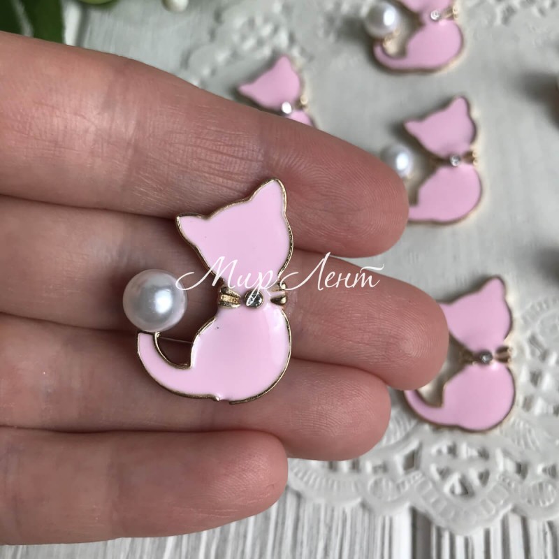 Серединка метал котик із перлиною, 3х2 мм, рожевий, шт.