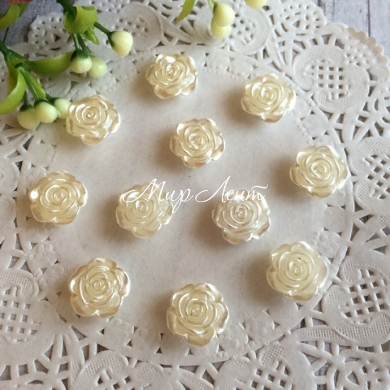 Серединка трояндочка міні з перламутром, 12 мм, молочна