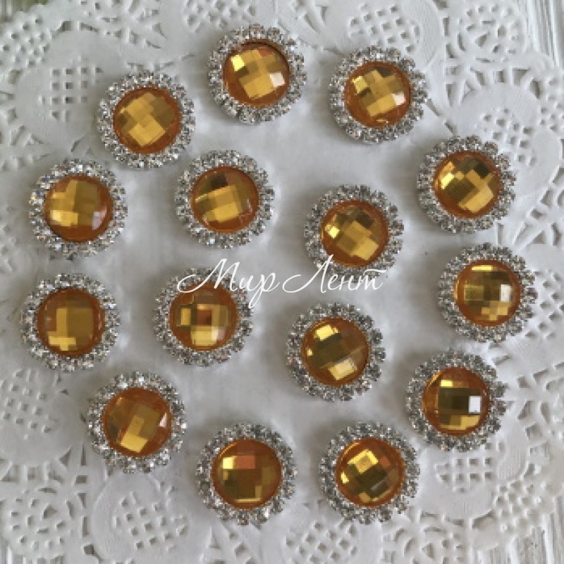 Серединка з гранованим каменем кругла, 16 мм, помаранчевий, шт.