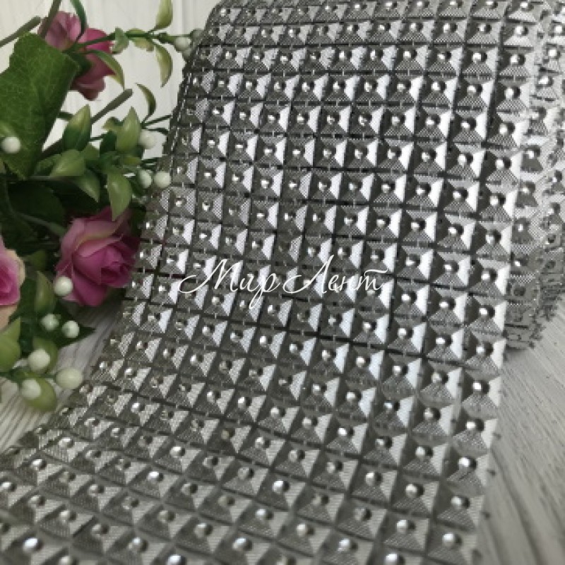 Шина декоративна, 10,7 см, срібло (прості квадрати), (відрізок 25 см)