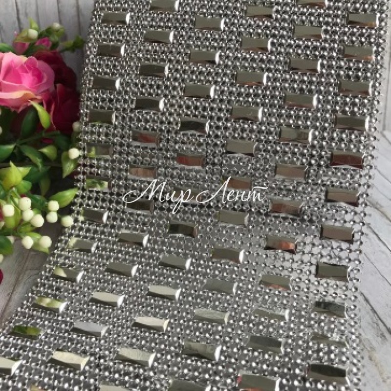 Шина декоративна, 12 см, срібло (прямокутники) (відрізок 25 см)