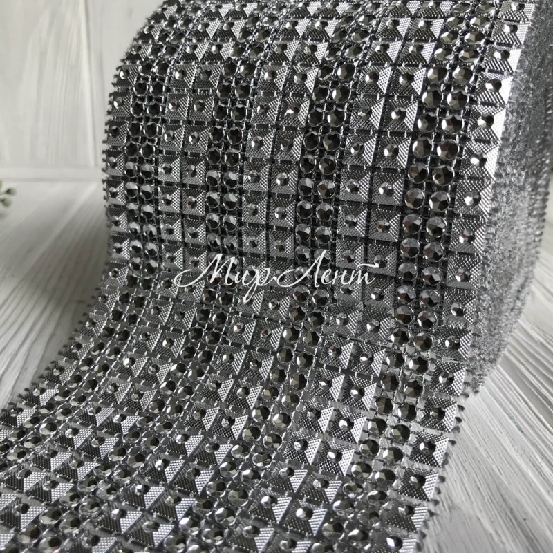 Шина декоративна, 11 см, срібло (квадрати-кружечки), (відрізок 25 см)