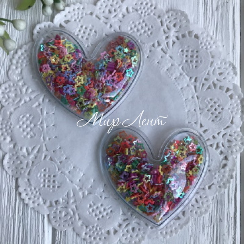 Силіконове серце з наповнювачем, 5 см, порожні різнокольорові зірки, шт.