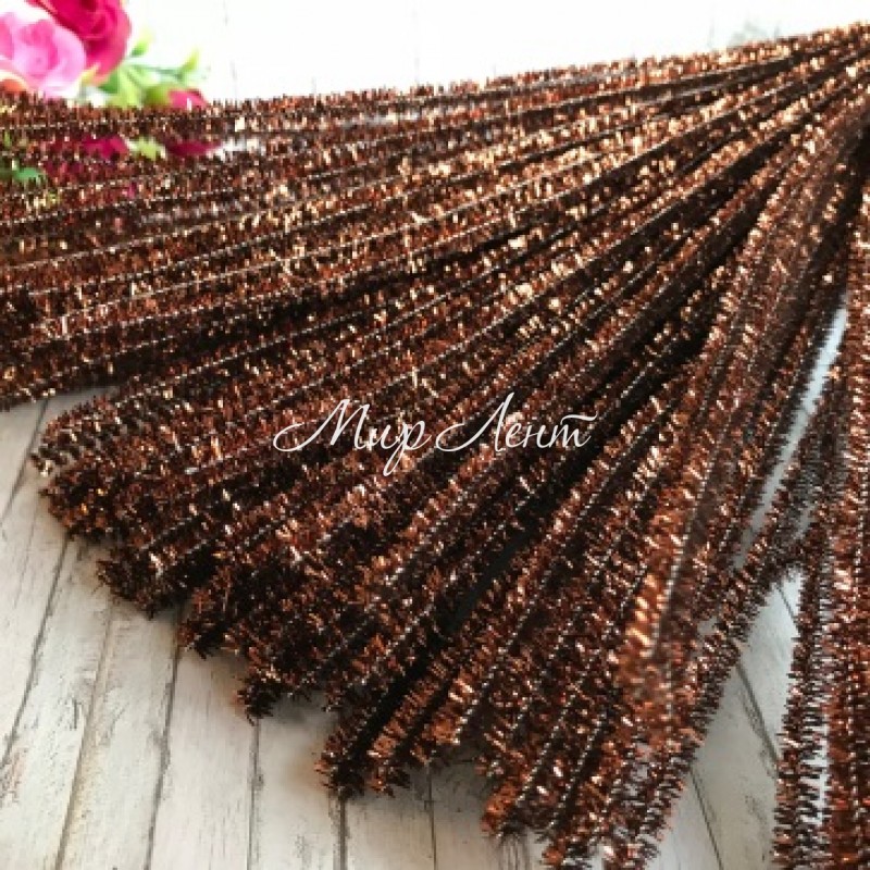 Синельний дріт із блискітками, 30 см, шоколадний, ціна за шт.