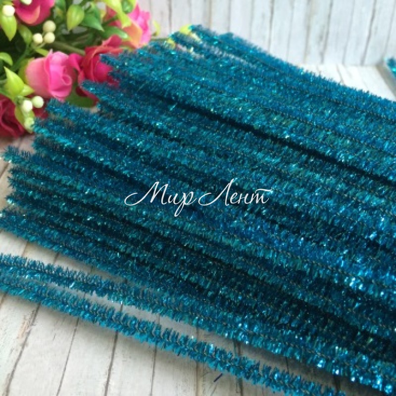 Синельний дріт з блискітками, 30 см, бірюзовий, ціна за шт.