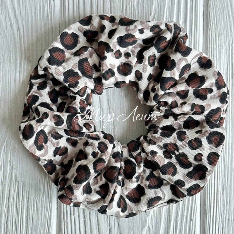 Скранч турецький трикотаж, 12 см, білий з бежево-коричневим леопардом, шт.