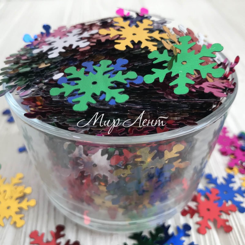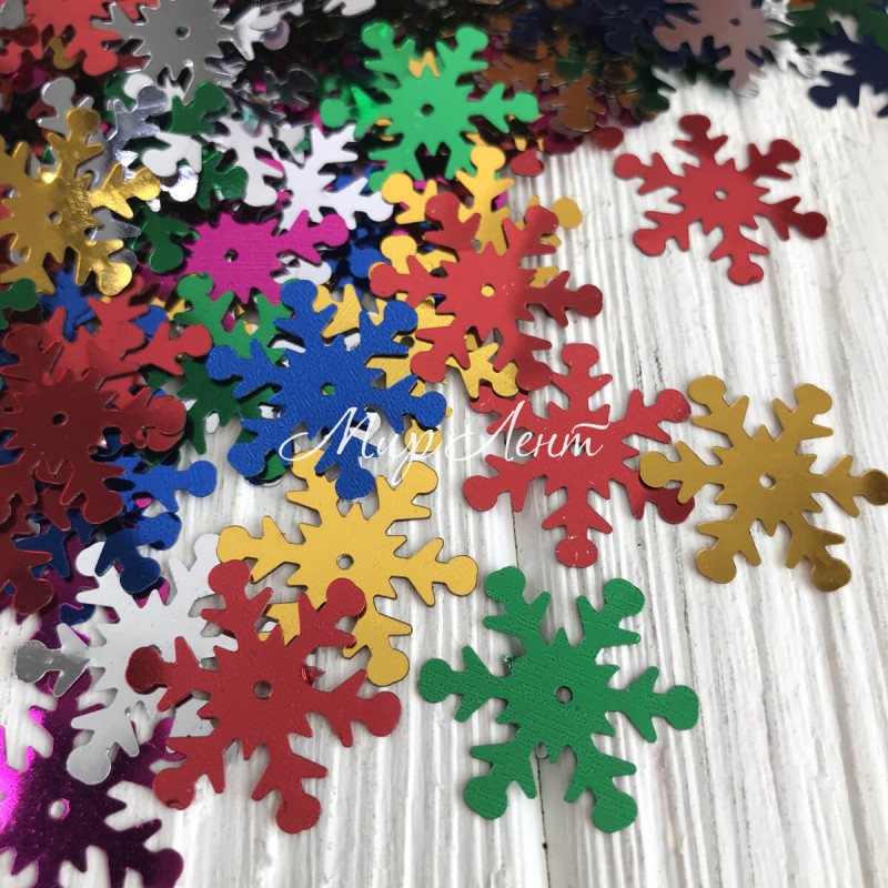 Сніжинка-паєтка, 2,5 см, кольоровий мікс, 1 шт.
