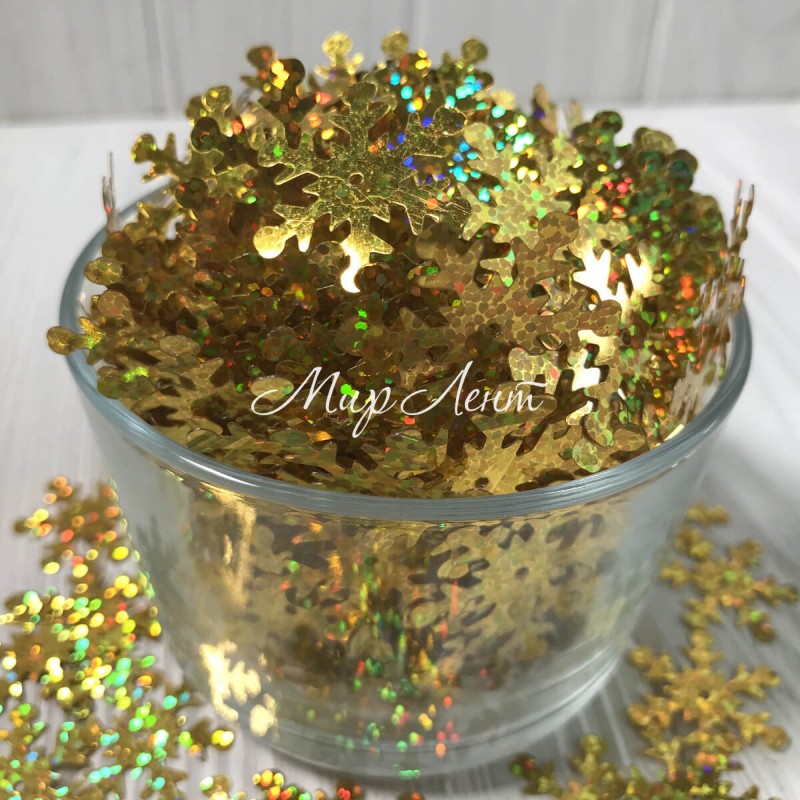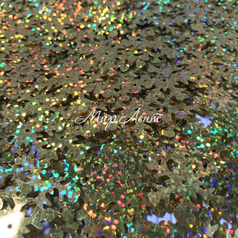 Сніжинка-паєтка, 2,5 см, золото голограма, 1 шт.