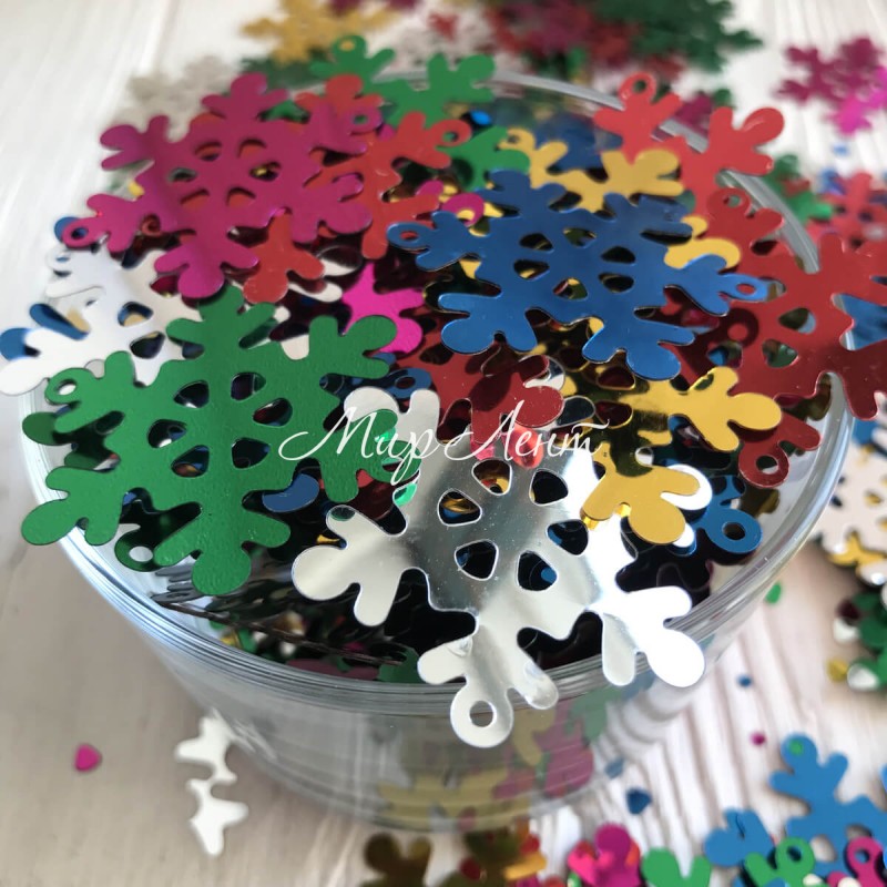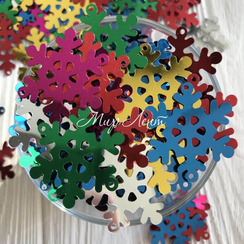 Сніжинка-паєтка, 2,5 см, кольоровий мікс, 1 шт.