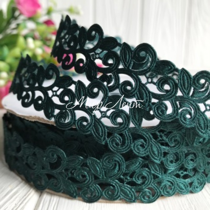 Стрічка-мереживо, 2 см, темно-зелений
